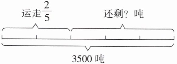 解析:本题考查分数的计算。通过图可知总量是3500吨,运走$\frac{2}{5}$,求剩下的吨数,可先求出剩下的占比,再用总量乘以剩下占比。