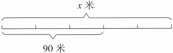 (1) 解:设总长度为x米,由图可知线段被平均分成5份,其中3份为90米,可列方程