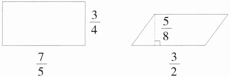 长方形面积:$\frac{7}{5} × \frac{3}{4} = \frac{21}{20}$(平方分米)