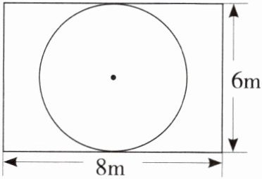 9. 在一块长方形的空地上修一个最大的圆形花坛(如下图),其余部分种草。草坪的占地面积是多少平方米?