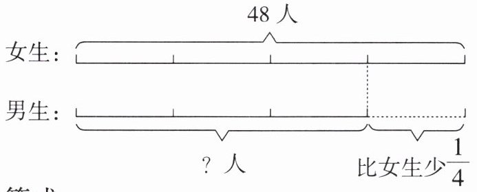 (1)把女生人数看作单位“1”,算式:$48×(1-\frac{1}{4})$