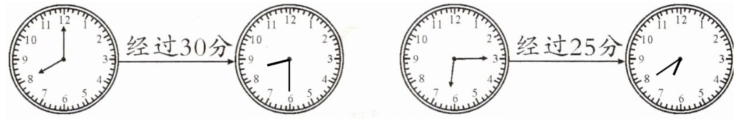 本题可根据钟表上时针和分针的位置确定起始时间,再结合经过时间计算结束时间。