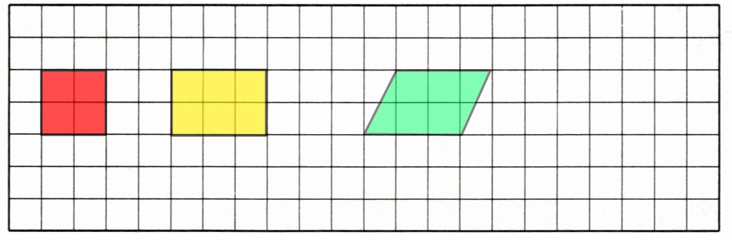 1. 请在方格图中,分别画一个正方形、长方形和平行四边形,并分别涂上红色、黄色和绿色。