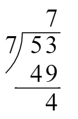验算:根据$被除数=商×除数 + 余数$,$7×7+4=49 + 4=53$。