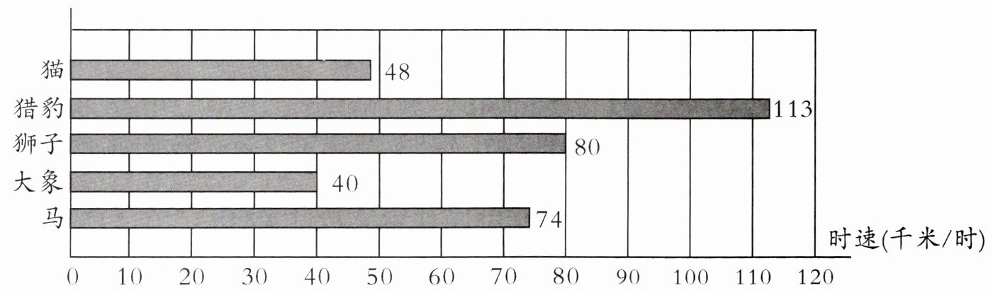 五、下面是五种动物的最高时速统计图,根据统计图回答问题。