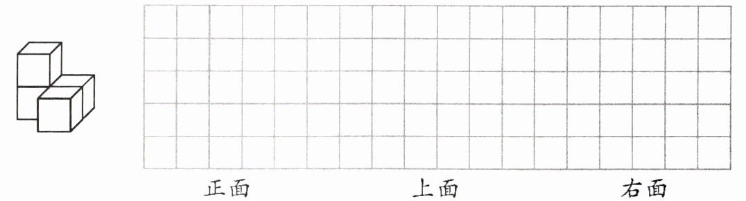2. 下面立体图形从正面、上面和左面看到的分别是什么形状?在方格纸上画一画。