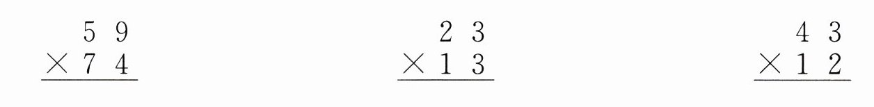 再用$74$十位上的$7$去乘$59$:$59×70 = 4130$(此处$7$在十位,表示$70$,积的末位与十位对齐);