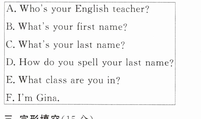 A:Oh,my English teacher is Miss Lin,too. Her full name is Lin Yan.