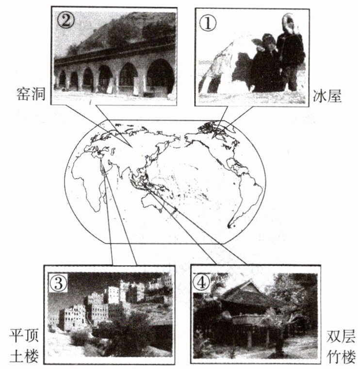 3. 世界各地建筑风格深受自然环境的影响,格外丰富多彩。读图,回答下列问题。