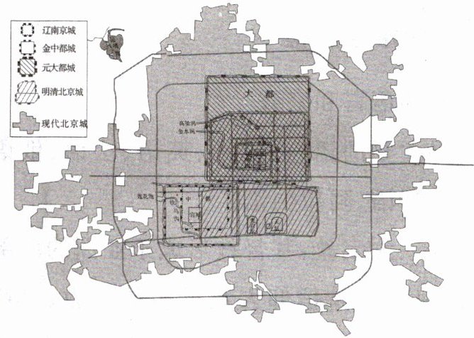 北京是我国著名的古都和历史文化名城,拥有3000多年的建城史和800多年的建都史。读辽代以来北京城区的变迁图,完成9—10题。