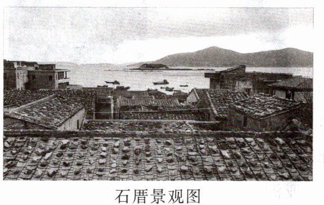 福建省平潭县位于海岛上,台风活动频繁。石厝是当地的传统民居,房顶的瓦片都用石头压着,成为当地一种文化符号。读石厝景观图,完成7—8题。