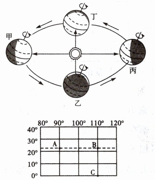 现象。(4) 当地球位于公转轨道上的乙处时,北半球处在