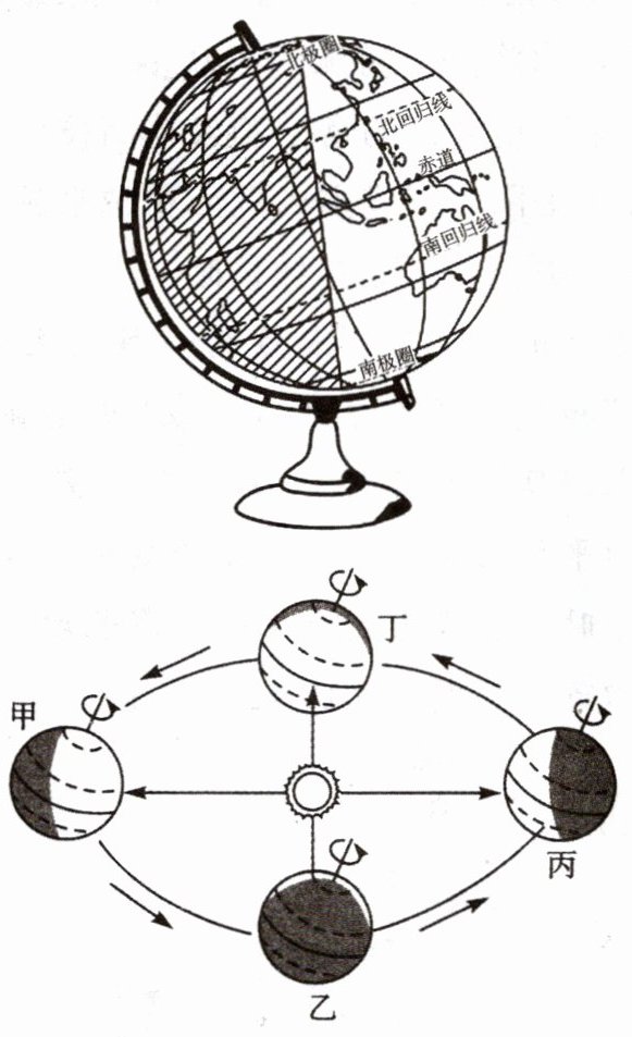 在探究地球运动的时候,同学们用手电筒照射地球仪进行演示,得到下图所示的结果。据此,完成 3—4 题。