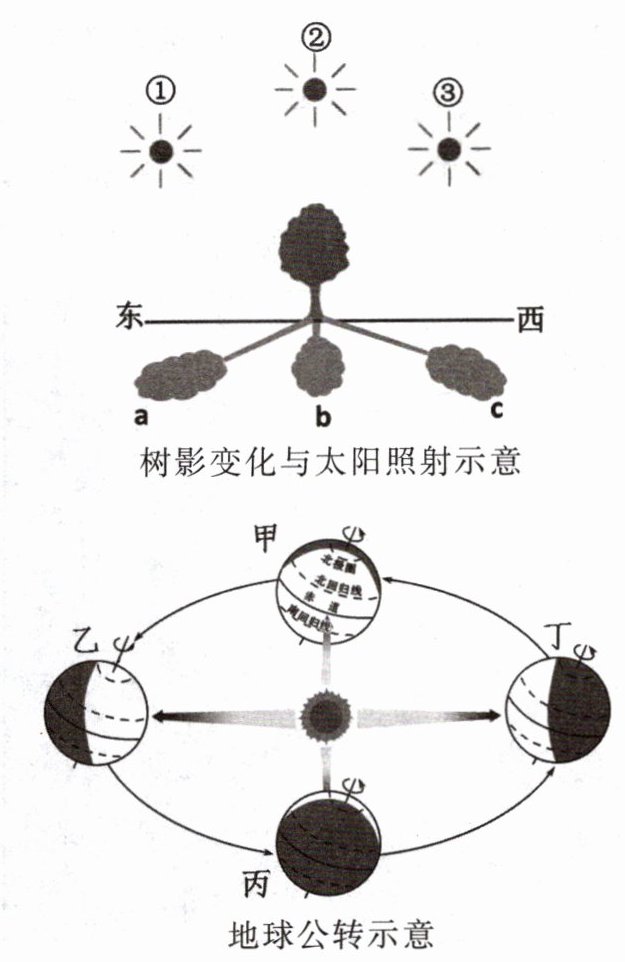 我们身边的很多现象与地球运动有关。烟台某中学地理兴趣小组的同学们对树影的变化进行了观察,并绘制了示意图。据此完成 5—8 题。