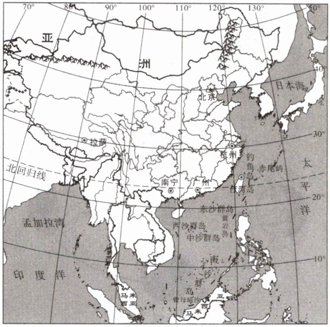 (2023·烟台)在探究地球运动及现象的时候,小明用天气软件查阅了杭州、广州、南宁和拉萨四城市(见下图)的日出和日落时刻,并留存了截图。据此完成 9—11 题。