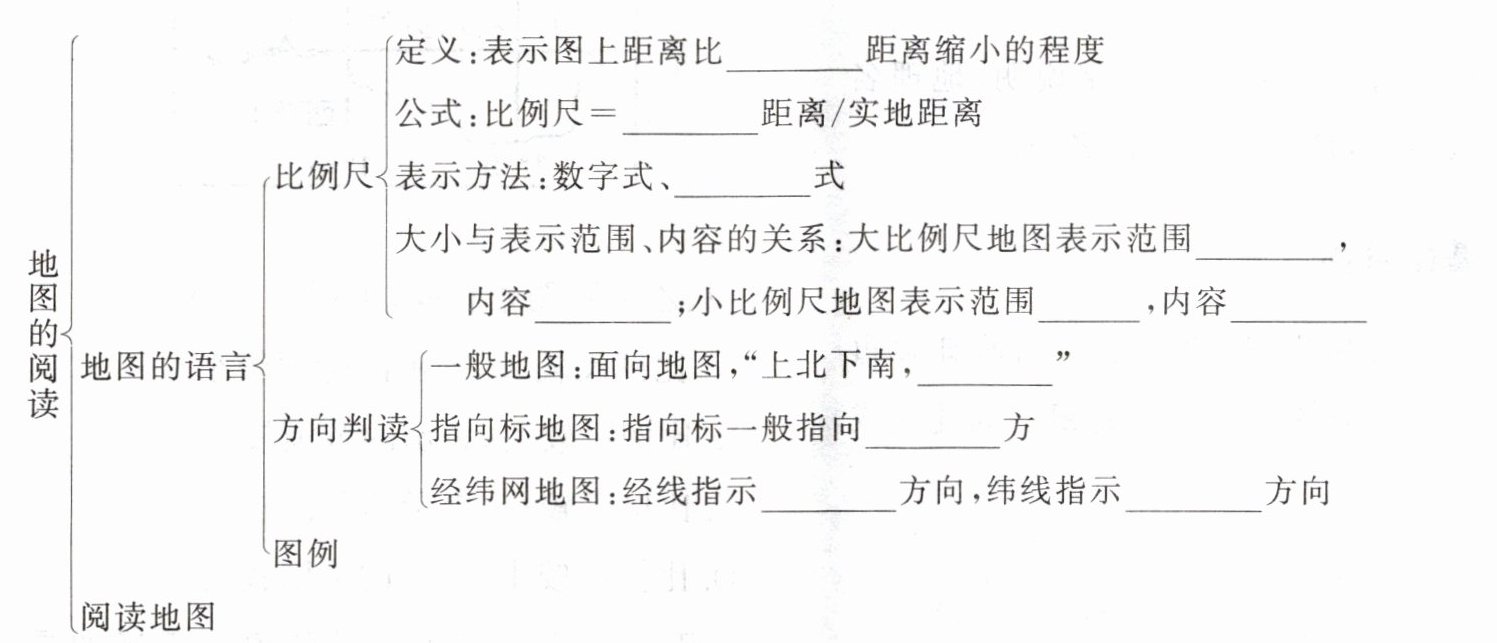 (3) 比例尺的大小及意义:比例尺有大小之分,比例尺的分母越大,比例尺越小;比例尺的分母越小,比例尺越大。比例尺大小不同,表示的地区范围和内容详略程度不同,
