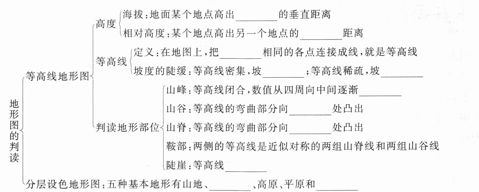 海平面;垂直 ;海拔;陡,缓;增大;高;低;重合;丘陵,盆地。