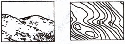中间较两侧高度低的地形部位。等高线的弯曲部分
