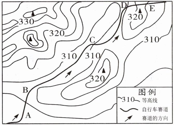 我国某地举办山地自行车越野赛,如图为自行车越野赛赛道示意图。据此完成 7—9 题。