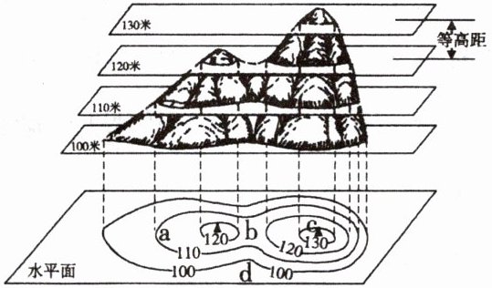 6. 图中 a、b、c、d 四地中表示山谷的是(