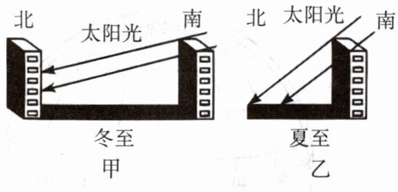 35. 地理现象对人们的影响体现在生活的方方面面。读我国北方某市冬至、夏至日光照图,回答问题。