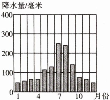 图来表示一个地区一年内降水的季节变化。② 季节分配特点:A 地降水量的季节分配比较
