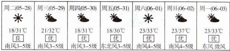 )A.以多云为主,5 月 28 日和 6 月 1 日晴
