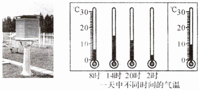 (1)按照气温测定要求,将温度计放到百叶箱内(温度计离地面 1.5 米)。