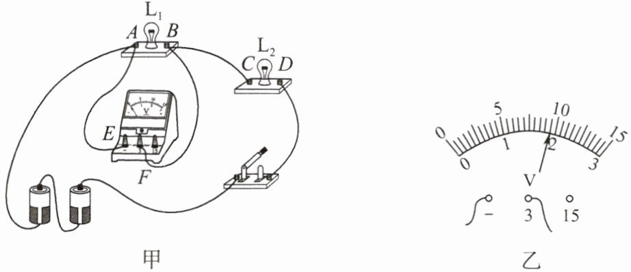 (2)在某次测量时,电压表的示数如图乙所示,此时灯 $ L_1 $ 两端的电压为 ____ V。