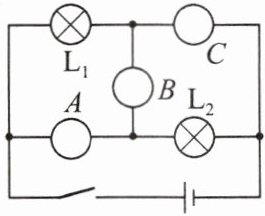 表;(2)要使灯 $ L_1 $ 和 $ L_2 $ 并联,$ A $、$ B $、$ C $ 三只表应分别是