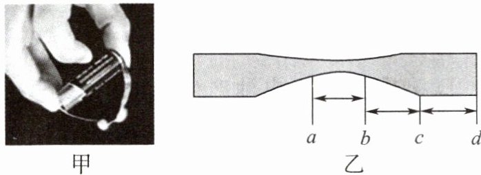 8. 某电视节目中,主持人做了“电池+口香糖锡纸=取火工具”的实验:取口香糖锡纸,中间剪掉一些,将锡纸条带锡的一端接在电池的正极,另一端接在电池的负极,很快发现锡纸条开始冒烟、着火,如图甲所示。图乙锡纸条上