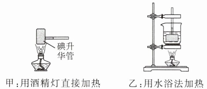 8.乙方案。因为酒精灯火焰的温度约为400℃,碘的熔点为113.5℃,甲方案中,碘可能先熔化,再发生汽化现象,对实验现象出现干扰;乙实验中,对碘采用水浴加热,碘的熔点大于水的沸点,碘只会发生升华,不会发生汽化,因此更合理的方案是乙。