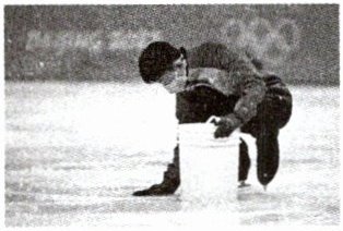 5. 我国成功举办了2022年北京冬奥会。如图所示,在滑冰比赛中,常需“补冰”:工作人员将冰碴和水的混合物抹在需要修补的冰面上,并向此处喷撒干冰,实现快速“补冰”。请用所学的物理知识解释这样“补冰”的原因。