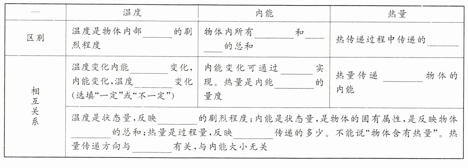 温度、内能和热量的区别和联系