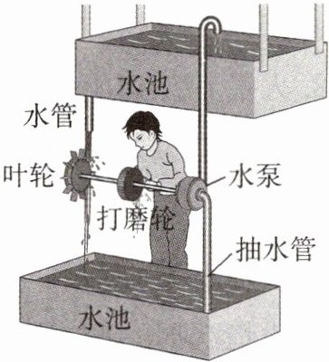 能,冲击叶轮,叶轮的转动又带动抽水机从低处将水抽到高处,从而循环工作。这种“永动机”违背了能量守恒定律