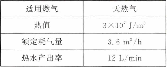 3. 一台燃气热水器内部结构如图所示,其技术参数见下表,其中“热水产出率”的含义是每分钟使水温升高$25\ {^{\circ}C}$时的出水体积,“额定耗气量”的含义是热水器正常工作$1$小时消耗的燃气体积。