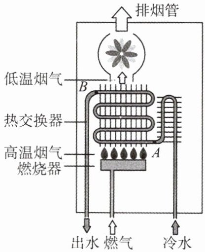 (4)为了提升热水器的加热效率,人们提出了若干措施:①使水管中的进水量;②减小提高进水口冷水的初温;③加长热交换器中水管长度;④提高排出的低温烟气的温度。您认为措施
