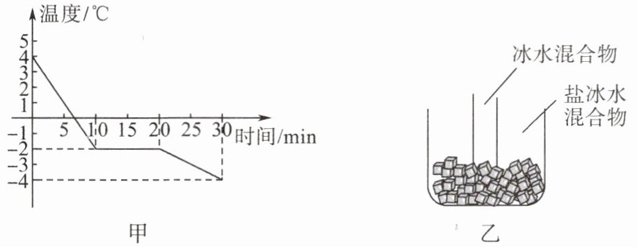 (3)如果将一支装有冰水混合物的试管放入正在熔化的盐冰水混合物中,如图乙所示,烧杯中含盐的冰未完全熔化前,试管中冰水混合物中的冰会