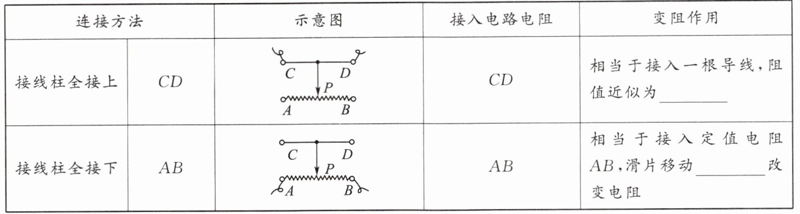 (1)主要构造:滑片、金属杆、电阻丝、