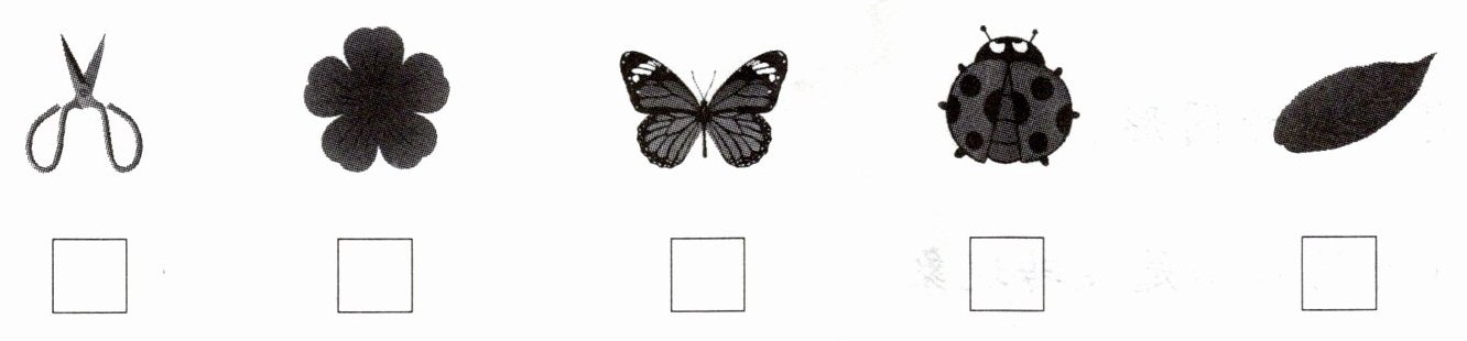 一、找一找哪些是对称的,请在$□$内画“√”。