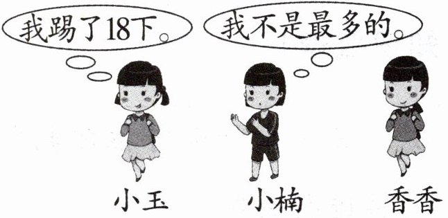二、小玉、小楠、香香3个人踢毽子,踢了28下、18下、22下。猜一猜小楠踢了多少下?