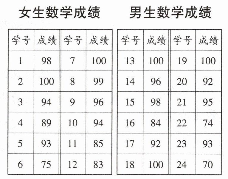 男生和女生在90~99分数段的人数相同(答案不唯一)