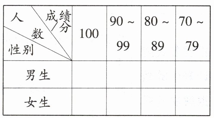 |性别| 100 | 90~99 | 80~89 | 70~79 |