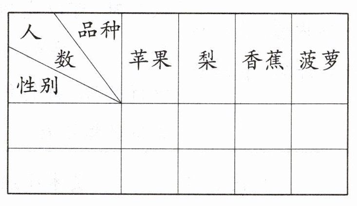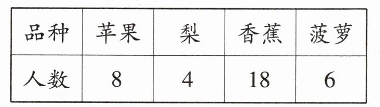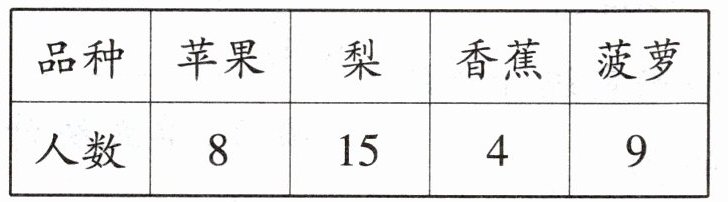 男生中梨的人数$15$人最多,女生中香蕉的人数$18$人最多。