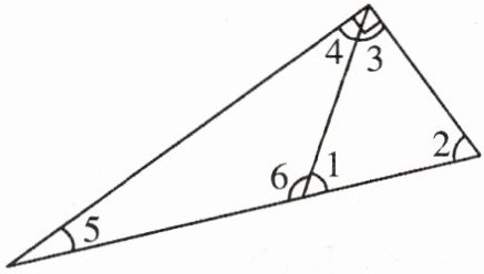 【典例6】下图中,$∠1= 58^{\circ }$,$∠2= 67^{\circ }$。$∠3$,$∠4$,$∠5$,$∠6$分别是多少度?