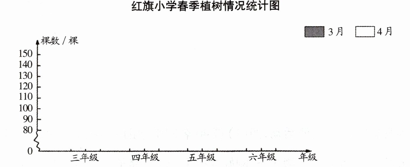 (3) 4 月份 4 个年级共植树多少棵?
