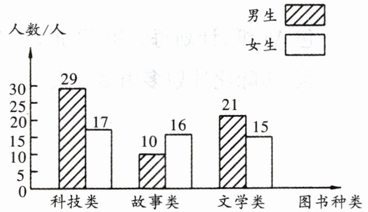 2. 喜欢科技类课外书的男生最多,喜欢文学类课外书的女生最少。