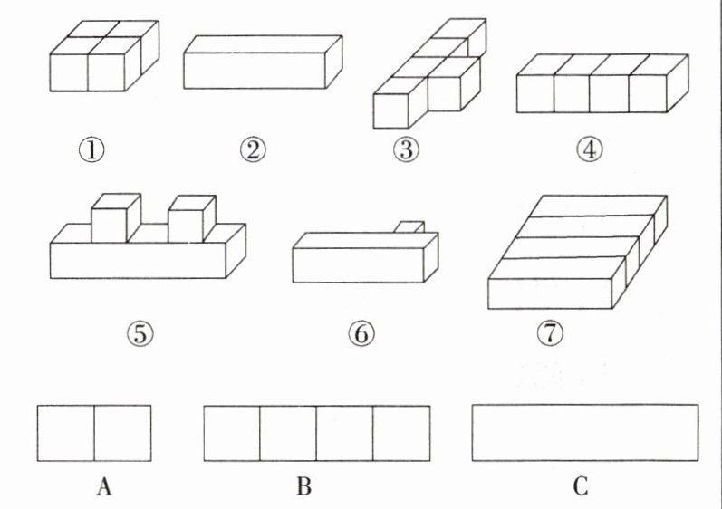(2)从左面看,哪几个看到的图形相同?你能将看到的图形画在下面吗?