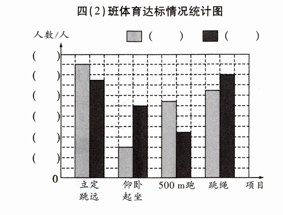 在“仰卧起坐”测验中,男生比女生少8人,请根据这一条件补充统计图。
