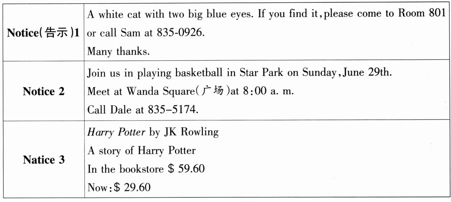 )6. What is the best title for each notice?1. Book Sale 2. Sports Club 3. Lost 4. Found